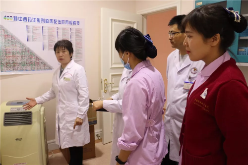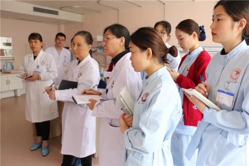 石主任对我院新生儿科进行现场检查和演示指导的方式,对临床护理工作人员和管理人员进行了提问和讲解,在场的医护人员都认真听取,积极参与。