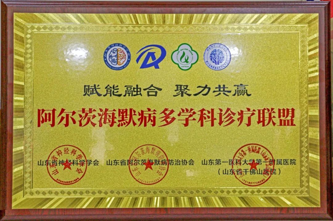 在大会的授牌仪式上,山东第一医科大学第一附属医院副院长辛涛教授和山东第一医科大学神经病学系主任杜怡峰教授为包括我们济南南郊医院在内的35家阿尔茨海默病多学科诊疗联盟成员单位进行了授牌。这一荣誉不仅是对我们医院在阿尔茨海默病诊疗领域工作的肯定,更是对我们未来工作的鞭策和激励。