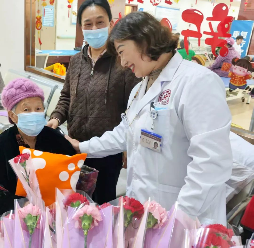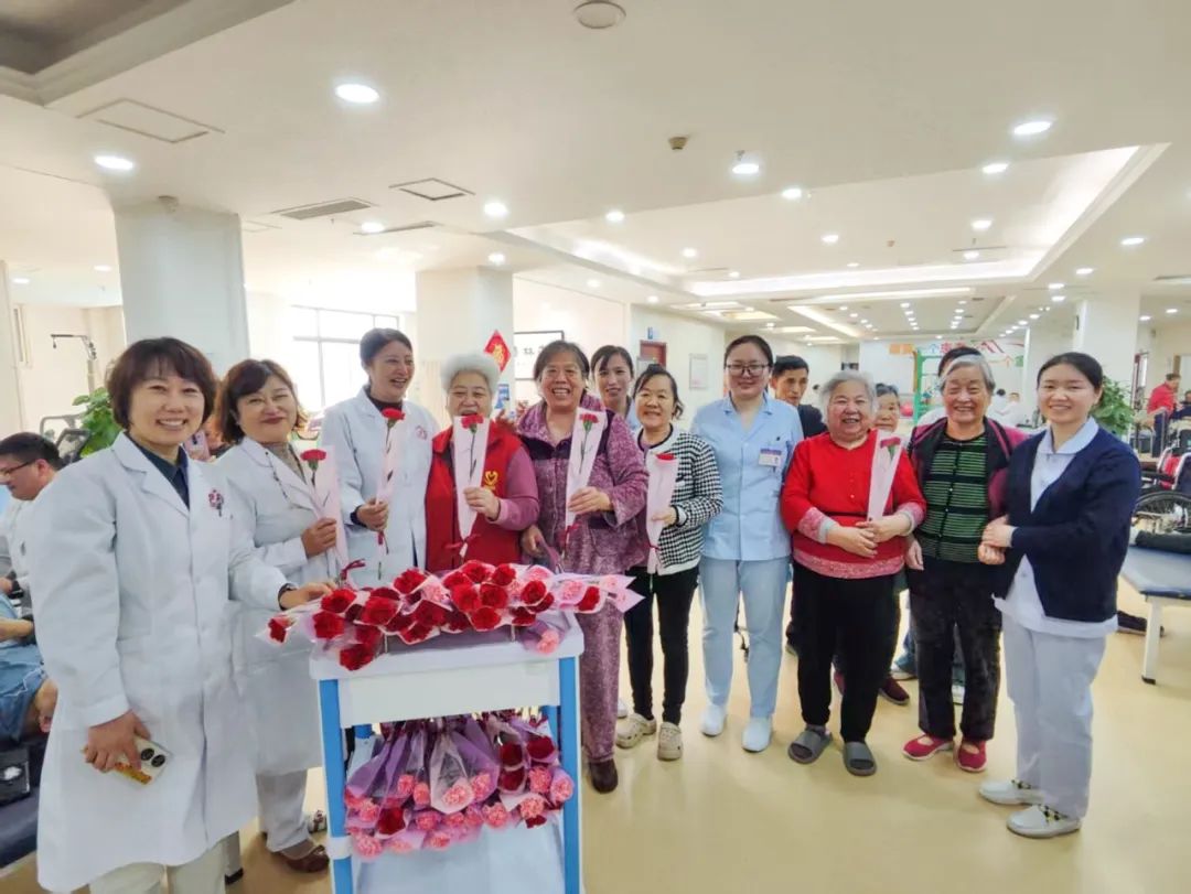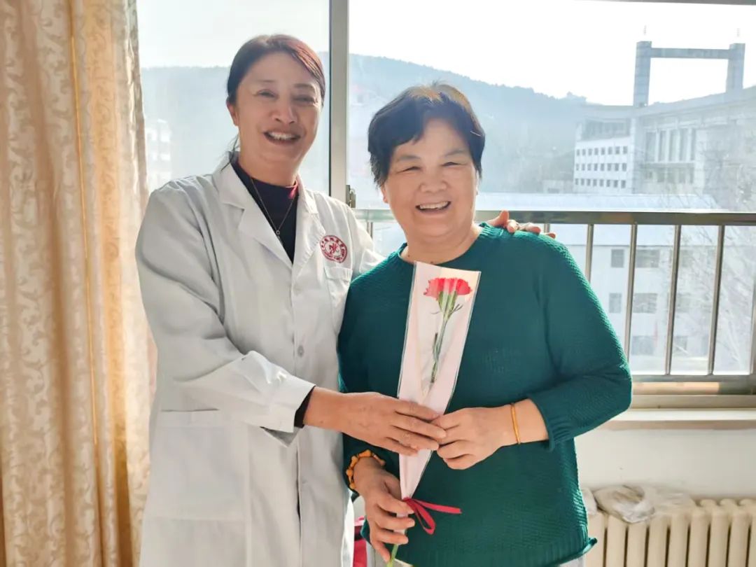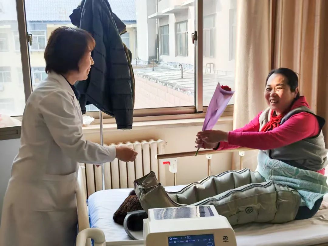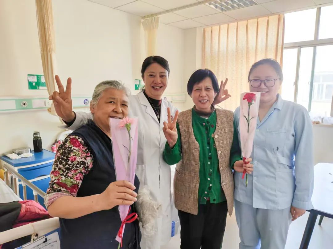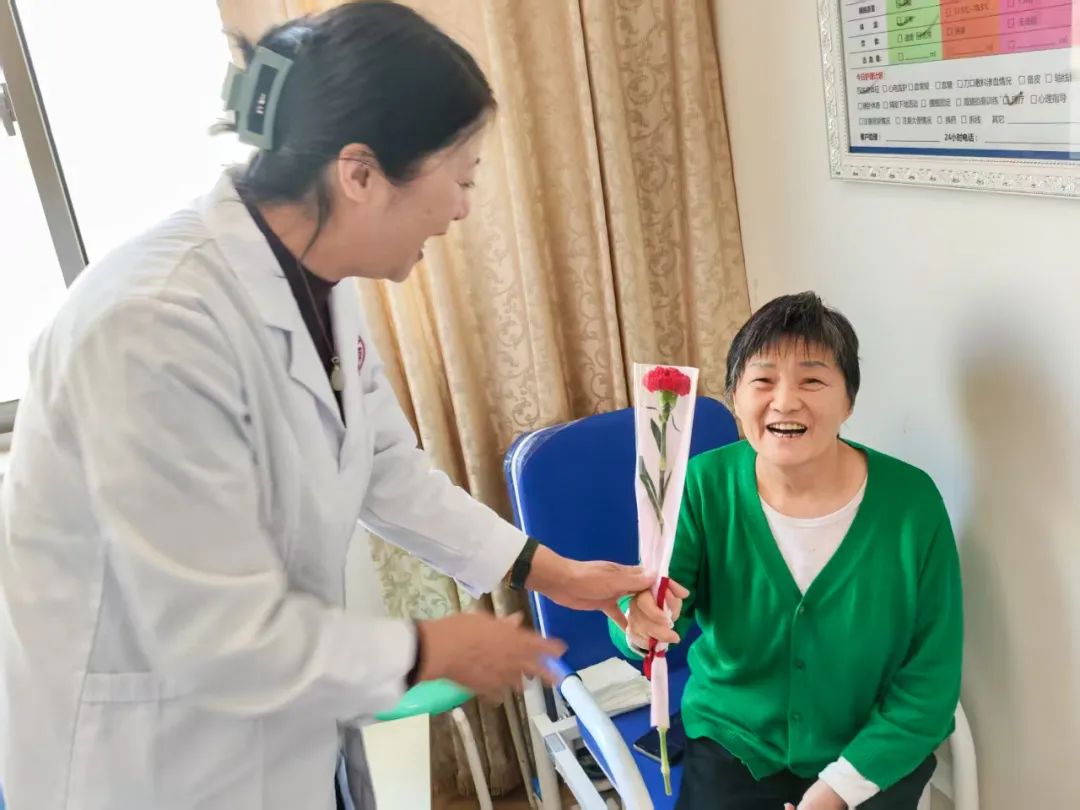 赵春玲院长携医务科刘敏主任、办公室张艳杰主任,将带着晨露的康乃馨轻轻送至每位女性患者手中。那些曾被生活磨砺的双手,那些常年与病痛抗争的掌心,在这一刻,接过的不仅是一朵花,更是一份被重新唤醒的生活仪式感。