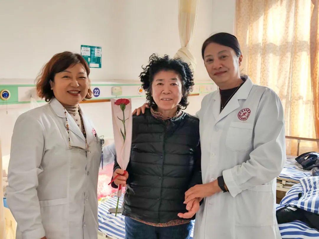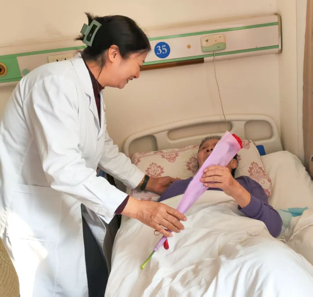 “您辛苦了,祝您早日康复!”当康乃馨被轻轻递到患者手中时,许多人的眼眶湿润了。这些女性或许已多年未收过鲜花:有人为家庭操劳半生,将浪漫深埋于柴米油盐;有人与病痛抗争数载,早已习惯将日子过成病房里单调的刻度。而今天,从赵院长温暖的掌心到患者颤抖的指尖,粉白相间的花瓣正悄然融化着岁月的冰霜。