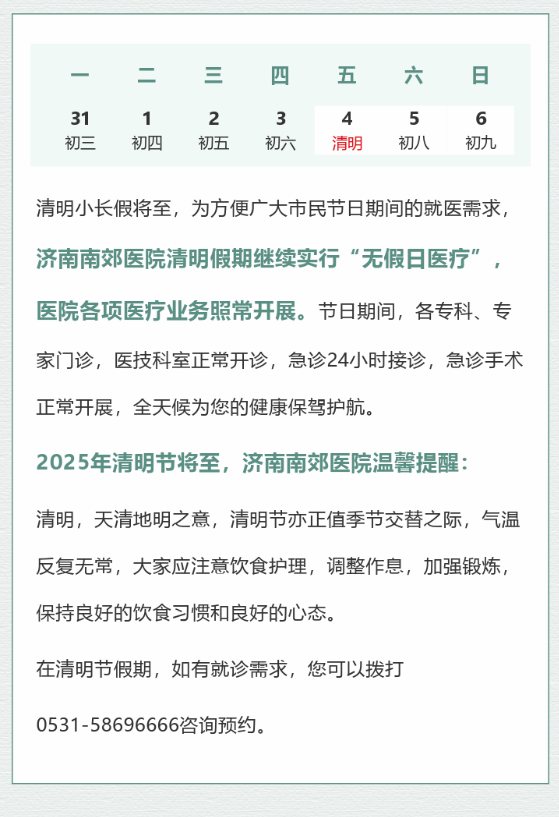 济南南郊医院“清明节”不放假,健康守护不打
