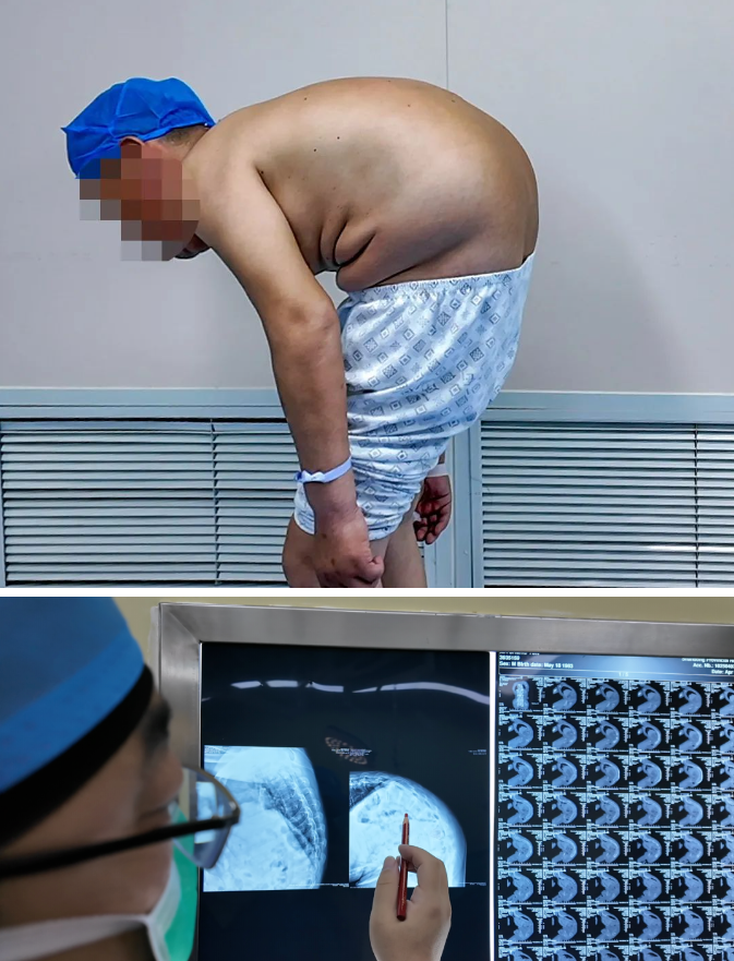 41岁的他,被强直性脊柱炎无情“捆绑”长达20多年。脊柱重度后凸畸形,使他的身体近乎折叠,直立行走成为奢望,平躺休息更是遥不可及。心肺等重要脏器在长期的压迫下,艰难“喘息”。面对这样棘手的病情,多家医院无奈婉拒手术,然而,济南南郊医院脊柱外科团队经过多次与多科室专家会诊,进行案例研讨,最终确定了经后路脊柱后凸椎体截骨矫形钉棒内固定+胸腰椎后柱融合术的手术方案,帮助他重新挺直了脊梁,开启新生。