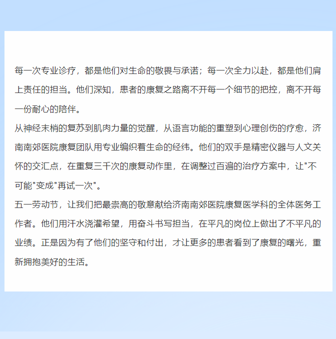 五一特辑 | 在康复医学科,看见劳动最美的模样