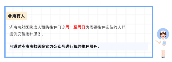 选择正规接种点:如济南南郊医院成人预防接种门诊,确保疫苗质量、接种安全及后续咨询服务。