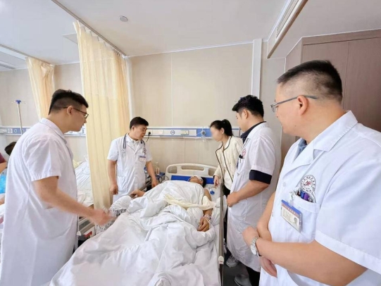 手术第二天,王兆太主任带领团队成员进行了查房,仔细查看了伤者,一般情况良好,生命体征稳定,腹部无阳性体征,手术切口未见异常,引流液清,血性。王兆太主任还详细询问了伤者术后的感觉。
