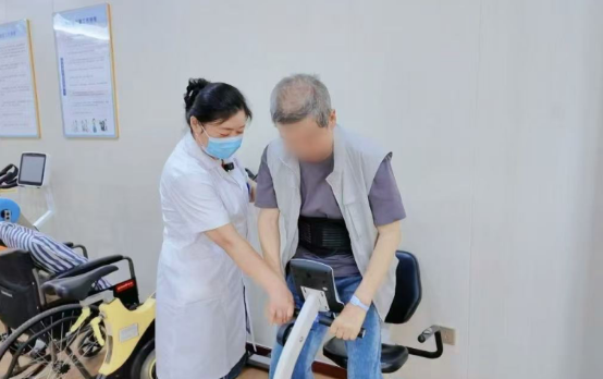 这位患者的康复之路充满着坎坷:脑梗后遗症导致行走不稳,摔伤骨折手术后,腰疼、下肢无力不断加重,最后彻底无法独立行走,生活基本依赖家人照料。他被老伴轮椅推送到南郊医院康复医学科时,老人不仅肢体功能受限,连大小便都难以自主控制,饱受着身体与精神的双重痛苦。