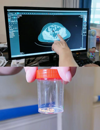 针对王阿姨的病情,赵凤军主任和他的团队进行了细致评估,最终决定采用无创取石方案。手术中,医生借助软镜精准抵达结石位置,配合负压吸引鞘,将这枚5 公分的输尿管结石彻底打碎后直接吸出。整个过程无需开刀,对肾脏和输尿管几乎没有损伤。