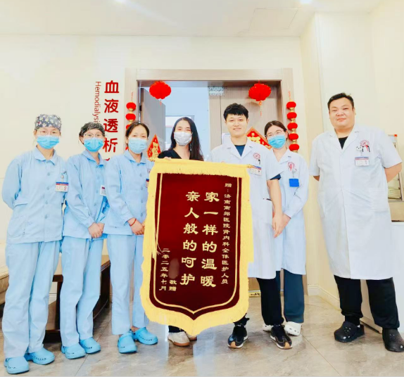 这面锦旗,是患者及家属沉甸甸的信任,更是肾内科透析室全体医护继续奋进的动力。它见证了医患间从陌生到信任的跨越,也让医护人员更加坚定:在守护透析患者的漫漫长路上,专业与温度缺一不可。愿这股温暖能在医疗行业传递,激励更多同仁,以爱为名,在各自岗位上,守护每一个珍贵的生命,让医疗的温度,温暖每一个需要关怀的心灵。