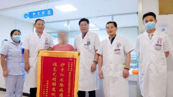 术后,患者恢复良好,困扰多时的症状得到有效改善。为表达感激,患者家属专程送来锦旗,“妙手仁术除病痛,德高艺精解患忧”,短短14字,凝聚着对孙耀华主任团队医术与医德的双重肯定。这面锦旗,不仅是医患信任的见证,更是南郊医院肿瘤二科以精准医疗、人文关怀对抗复杂肿瘤的生动注脚,激励着团队在抗癌路上继续为患者点燃希望之光。
