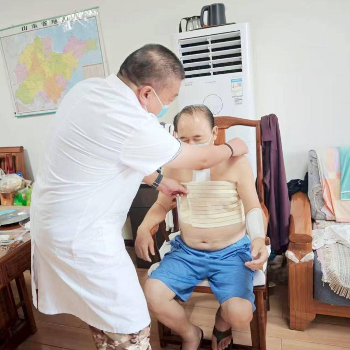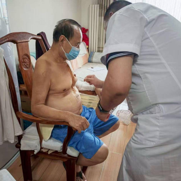 孙大爷术后身体虚弱,无法前往医院换药。当他致电医院咨询时,既面临“暂未开通上门换药业务”的现实情况,又因术后风险较高,让医护人员不敢贸然应允,一时间犯了难。关键时刻,精通急救知识且医疗技术全面的崔海银院长得知此事,当即表态:“患者有特殊需求,我们不能让老人为难。”他毫不犹豫决定亲自上门,以专业能力为患者的安全保驾护航。