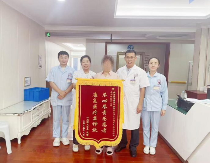 家属将写有“尽心尽责为患者,康复医疗显神效”的锦旗送到医护人员手中,眼中满是感激。这面锦旗,是对李红梅主任团队医术的高度认可,是对王学超医生敬业精神的赞扬,是对李传新护士悉心护理的肯定,更是医患之间深厚情谊的生动写照。