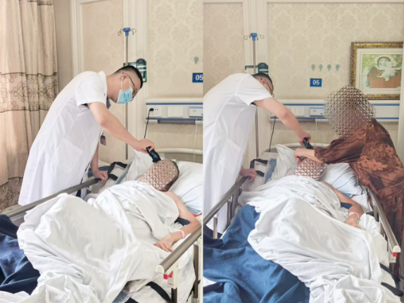 术后康复期间,医护人员展现出无微不至的人文关怀。令人感动的是,陈安平医生亲自为患者理发,让患者保持舒适状态,这一细节充分体现了医院“以患者为中心”的服务理念。在医护团队的精心治疗和护理下,患者意识逐渐清醒,各项功能稳步恢复。目前,患者已顺利转入康复科,正在接受系统性的康复治疗。康复团队为其制定了包含运动训练、认知康复等内容的个性化方案,助力患者逐步恢复健康。