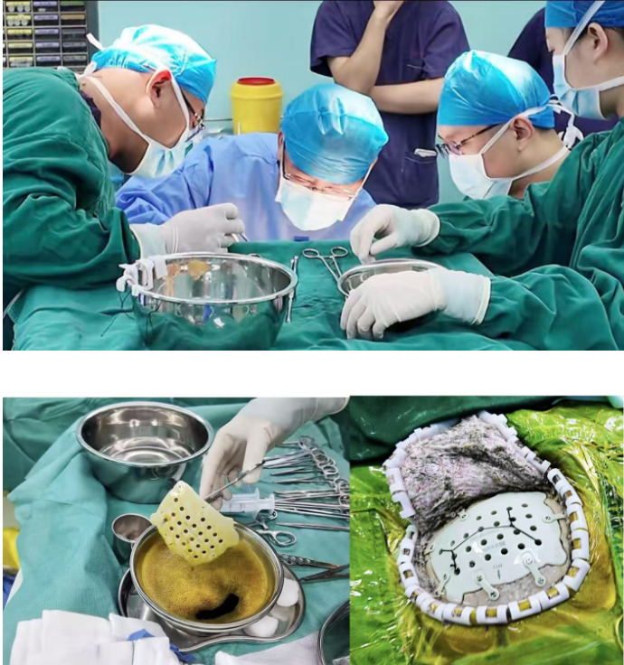 手术由脑科专家郭晓宾主任和陈安平医生带领的医疗团队协同执行。据郭晓宾主任手术团队介绍,本次手术采用了先进的PEEK(聚醚醚酮)材料作为修补植入物。相较于传统钛网材料,PEEK材料具有显著优势:其影像兼容性极佳,在CT和MRI检查中不会产生伪影,便于术后监测;生物相容性卓越,几乎不会引发排异反应;能够进行精准个性化定制,与骨窗实现完美契合;力学性能优异,弹性模量与人体骨骼接近,可有效吸收冲击能量,从而更好地保护大脑。