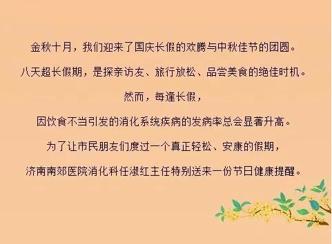 双节同庆,健康先行:济南南郊医院消化内科专