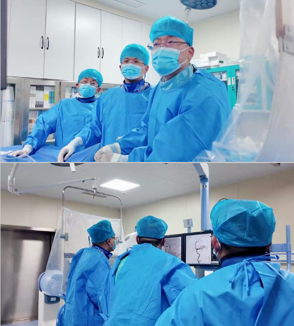 时间就是大脑!济南南郊医院脑科郭晓宾主任带领桂彬医生、陈安平医生和脑科团队立即启动急救流程。紧急行脑血管造影术,造影清晰显示:左侧大脑中动脉M1段以远完全闭塞,结合患者突发歪倒、右侧肢体瘫痪、言语功能丧失等症状,明确该血管为责任血管。郭晓宾主任立即与家属沟通后,家属当机立断同意实施左侧大脑中动脉支架取栓术+大脑中动脉球囊扩张术+大脑中动脉支架置入术。手术团队争分夺秒,通过介入技术精准取出血栓、扩张狭窄血管并植入支架,成功打通了闭塞的生命通道,从入院到血管再次开通不超过30分钟,在南郊医院“三位一体一站式急救模式”与“三通”机制下,充分发挥时间就是大脑的精神,保护了患者生命,挽救了濒临坏死的脑组织。术后即刻患者右侧肢体力量较术前明显改善,家属悬着的心终于放下,这场持续数小时的“生命保卫战”也画上了圆满句号。